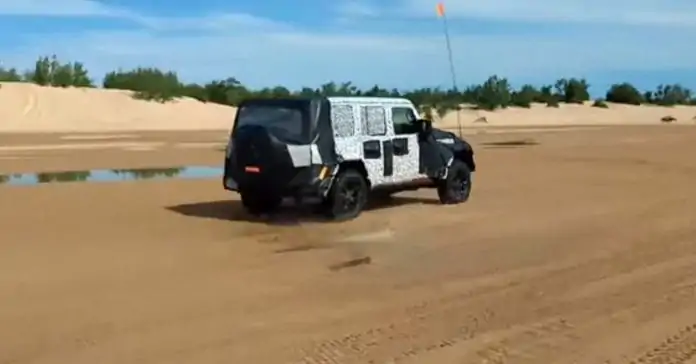 In the video below, you can see the 2018 Jeep Wrangler racing over the sand and bouncing through water puddles. We can clearly see the steeper rake of the windshield the new generation brings to the table. In the last video, we can see the model leaving the site, but it does a little slide towards the end of the clip.