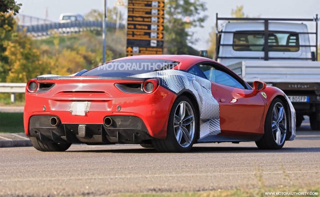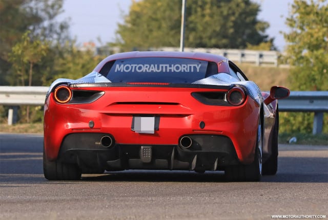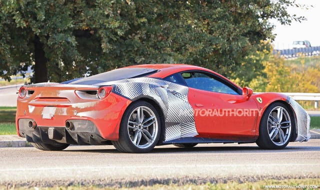 If you stack the 488 GTB and this one you will notice a few, although subtle, differences that start from the new intakes at outer edges of the front bumper. The changes continue to the side intakes which now appear to be slightly enlarged than on 488 GTB. Thanks to the Motor.es, a Spanish website, and their post from November we managed to catch a glimpse of a group of prototypes. Some of those were heavily shrouded in camo, but one was almost completely uncovered, and with it, we hit the jackpot!