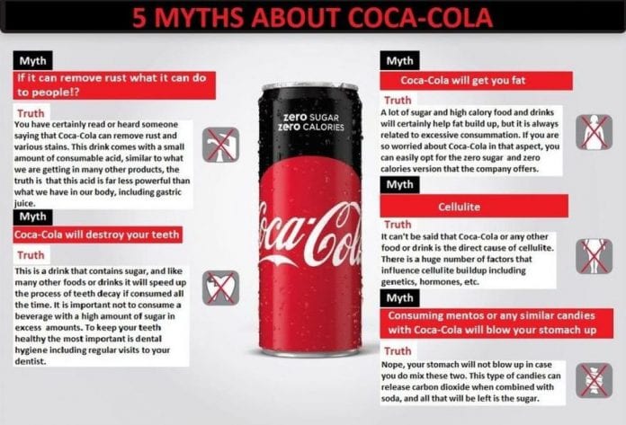 There are so many myths related to Coca-Cola, and since it is a world-famous brand, they are often targeted with articles that are written to bring half-truths or even lies about their product. This is not the problem only for Coca-Cola since many big companies are facing texts like this.