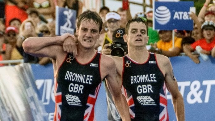 Briton Jonny Brownlee was too tired to finish the race by himself but his brother had his back as he helped him cross the finish line in a breathtaking end of the Triathlon World Series in Mexico.