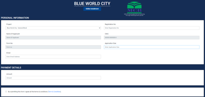 - Installment Payments: For customers who have opted for installment plans, Blue World City’s online payment system allows them to conveniently pay their monthly or quarterly installments online. Customers can log in to their accounts, access the payment portal, and select the appropriate installment payment option. The system will guide them through the payment process, and they can choose their preferred payment method to complete the transaction.