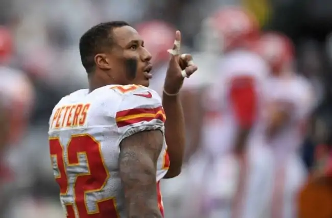 OAKLAND, CA - OCTOBER 16: Marcus Peters #22 of the Kansas City Chiefs walks on the field during their NFL game against the Oakland Raiders at Oakland-Alameda County Coliseum on October 16, 2016 in Oakland, California. (Photo by Thearon W. Henderson/Getty Images)