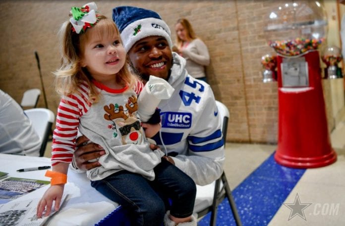 The holidays are a difficult period to be in the hospital and for those in need of treatment, even more when children are involved, but thanks to UnitedHealthcare the team can alleviate some of the stress and pain simply by giving away free hugs and high fives. That is the one thing that is always nice to see and according to center Travis Frederick “It’s always amazing when we get a chance to come out to a place like this and see the kids and see the smiles that we can bring to their faces. Often times it brings perspective to us that we play a game for a living, and whether we’re winning or losing, it doesn’t mean anything compared to a lot of these kids that are fighting for their lives.” Linebacker Jaylon Smith also stated that “Playing for the Dallas Cowboys, we’re on a great platform to be able to give back and put a smile on someone’s face. It’s something we’re good at, it’s something we love, and it’s healthy for us as well. It’s a blessing.”