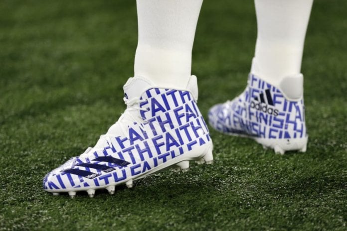 Just how big piece of Dak’s life was his mother is shown by another cleat design that was worn in her honor. We wrote about this a while back, and we told you that Prescott’s mother left him and his two brothers a message via her 2013 memorial service – Fight, finish, faith, and she meant each word for one son. Prescott has tattoos “Fight,” for his brother Tad, and “Finish,” for his brother Jace, while these “Faith” cleats were worn in late November against Washington.
