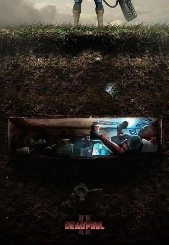 The Merc with the Mouth is also buried underground in a wooden casket, while the one standing definitely aboveground is Cable. He was mentioned in the Deadpool post-credits scene, where they informed us he would be in the sequel. He certainly looks like Captain Falcon with a large pulse rifle. You can check out the poster below.