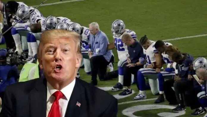 US President Donald Trump declared that NFL should enforce rules to prevent kneeling during the national anthem. Trump made the announcement Tuesday, and he praised the fans in the stadium who booed the players, the staff and Cowboys owner Jerry Jones. The whole team kneeled before the anthem, but they stood up during the singing.