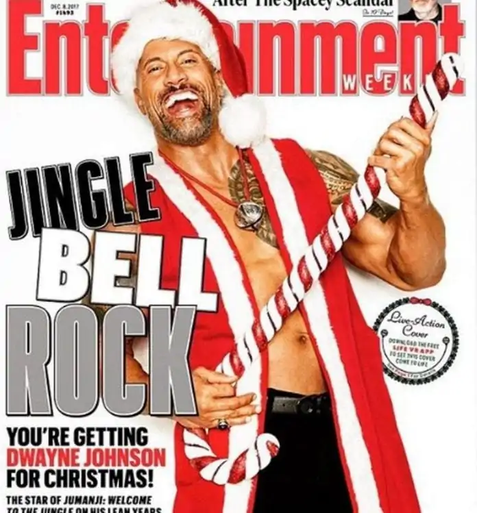 Thanks to Entertainment Weekly we have a chance to see Dwayne The Rock Johnson as a Santa! The Rock was given a Santa hat and a vest to show off his body for the December 8 cover of Entertainment Weekly.