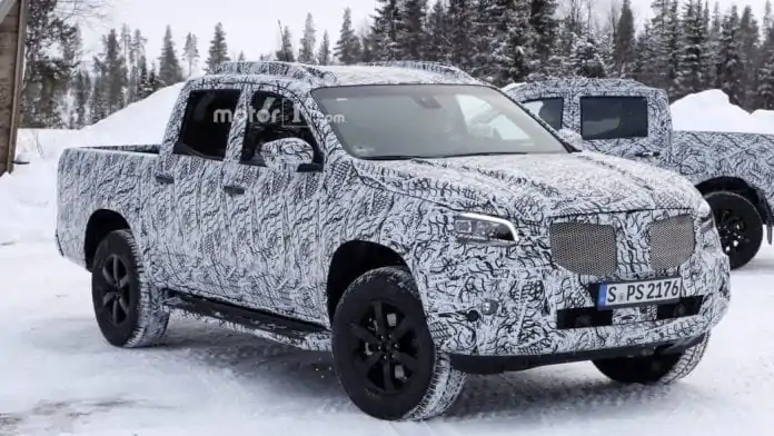 Thanks to the latest test that the Mercedes X-Class had, and thanks to the ever-lurking lenses of spy photographers we now have shots of what seem to be-near-production headlights that now give us a little broader picture of what to expect from the X-Class. Thanks to the loss of camo now we see that those headlights feature an LED strip of daytime running lights in the same tone as most of the company’s models.