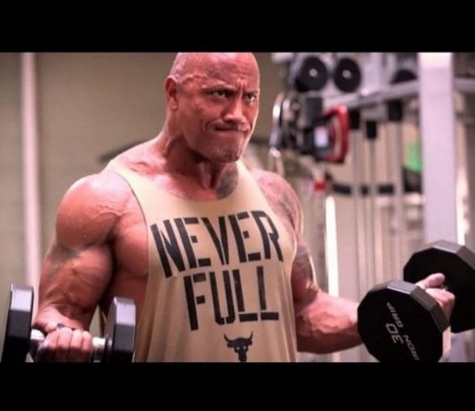 The Rock’s Traveling Gym contains 40.000 pounds of top notch workout equipment!