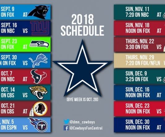 Dallas Cowboys Schedule Is Here – Season Starts In Carolina