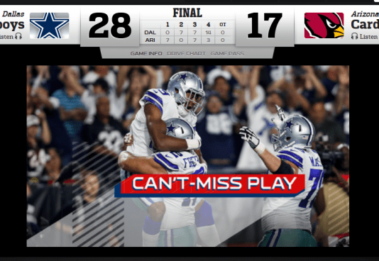 Dallas Cowboys vs. Arizona Cardinals – 28 : 17