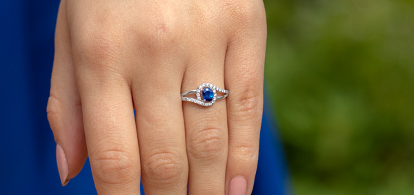 The white gold halo setting is the most common setting for blue sapphires. This setting can be customized in many ways. You can choose a simple setting with a blue sapphire and a slight halo of transparent white diamonds. You can opt for something more extravagant, both side stones or a more spectacular setting for a unique ring statement.