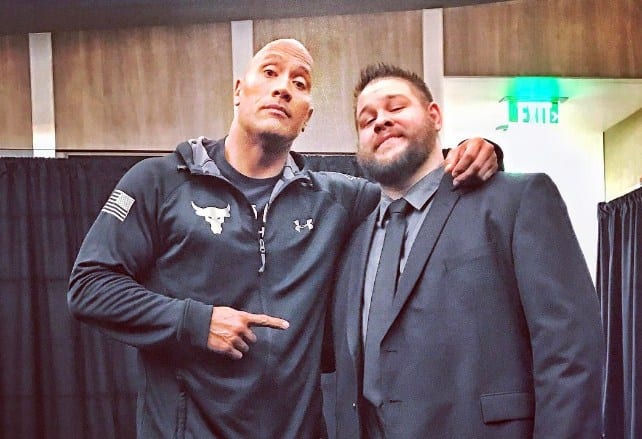 “We had a good laugh about the story of when I was training for my WWE comeback and title run. I was training with Curt Hawkins and Joe Henning. After our workout, me and Kurt were chopping it up about great independent wrestlers. I said ‘Dude I just saw this guy last night on YouTube names Kill Steen or something like that. He’s amazing.’ Kurt said, “That’s my good friend Kevin Owens’. I said ‘Well, tell your friends he’s bad a*s and I hope WWE signs him’. Now, five years later and relentless hard work, he’s WWE Universal Champion.”