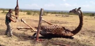 Poor Giraffe Saved by Two Men After Getting Stuck in Electric...