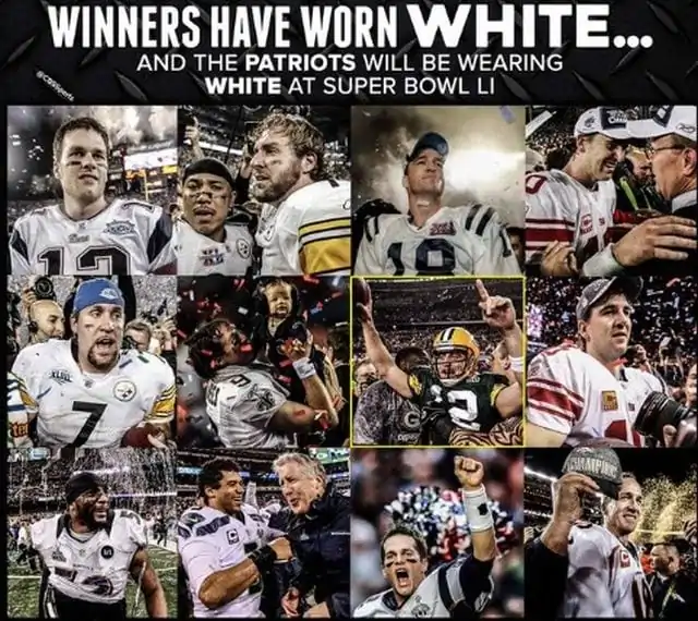 If we take a look at the past 12 Super Bowls, we can see that the team that has worn white in the biggest match of the year has won the Lombardi Trophy 11 out of those 12 times. The only squad that won the Super Bowl wearing their home uniforms in the past 12 years were the Green Bay Packers who did it in 2010 with their green and yellow combination.