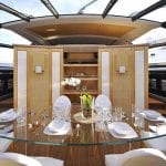 British designer Stuart Hughes created his marvel, and the proud owner is a businessman from Malaysia. Gold and platinum were used for the yacht which is no wonder why the price is extremely high. The main bedroom has the wall created with the meteorite as well as the statues assembled from the real Tyrannosaurus Rex’ bones. Everything you find here is either gold or diamonds.