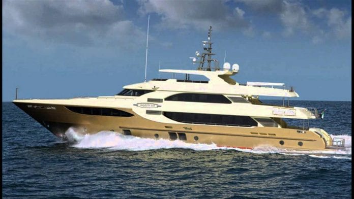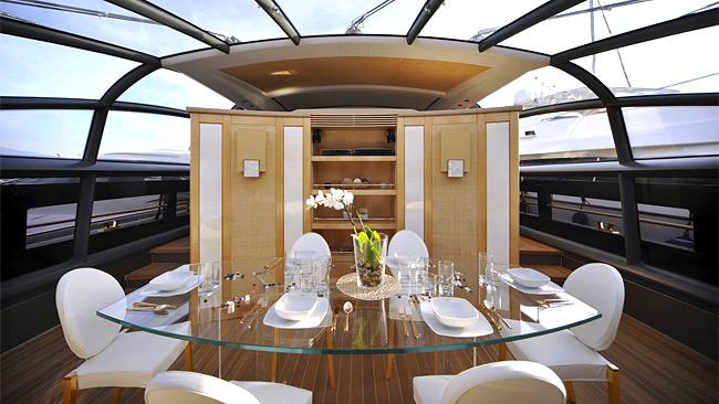 British designer Stuart Hughes created his marvel, and the proud owner is a businessman from Malaysia. Gold and platinum were used for the yacht which is no wonder why the price is extremely high. The main bedroom has the wall created with the meteorite as well as the statues assembled from the real Tyrannosaurus Rex’ bones. Everything you find here is either gold or diamonds.