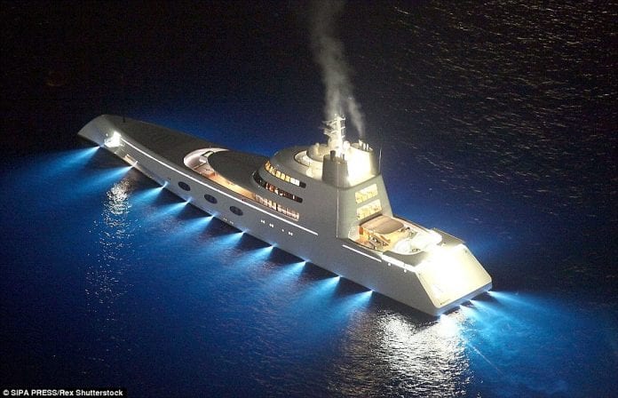 This is a unique ship with a common name. Its design reminds us of a warship or a submarine, while the yacht belongs to Andrey Melnichenko and Sandra Melnichenko. Created by Blohm+Voss, this creation is luxurious to its core with one master bedroom that is 250 square meters large. It has six guest apartments, which can be turned to massive cabins by moving the walls, a place for a chopper, three pools, disco club and glass bottom.