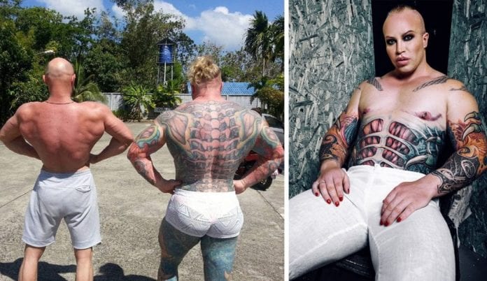 Last but not least is Sasha also known as Shpak. We left him at the end because he carries the title of world’s weirdest bodybuilder. In addition to his massive muscles gained trough exercising he also has other notable things on himself. Sasha loves to experiment with his body, so some of his experiments include cosmetic surgeries, steroids, tattoos, fangs, silicone chest implants, teardrop-shaped nipples.
