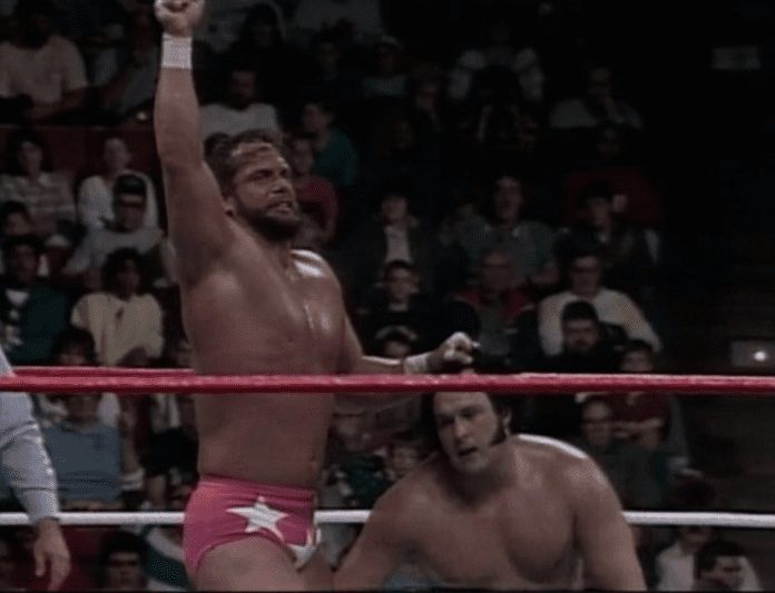 Honky Tonk was left alone against Randy Savage, Jake Roberts and Ricky Steamboat. He got beaten up badly, so he decided to walk away and lose by a count out.