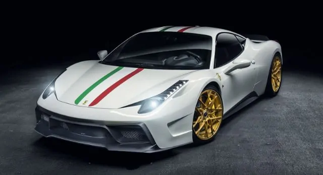 The gold wheels which really make the car look fashionable is another feature worth mentioning. Moreover, there are yellow brake calipers, whereas the paint is white with one green and one red stripe across the vehicle’s hood and roof.
